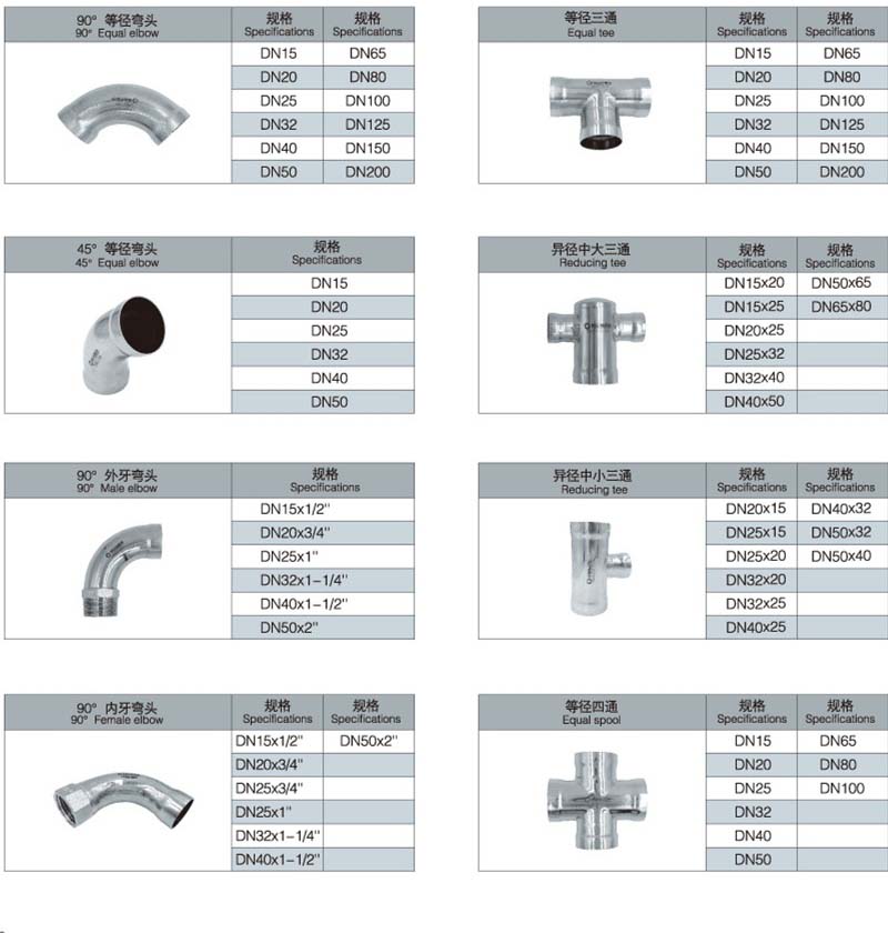 承插焊不銹鋼管件,衛(wèi)生級管件,主要適用于石油化工、醫(yī)藥衛(wèi)生、電力、航天、軍工、消防、冶金、造船、燃氣、核電、及環(huán)境保護等要求承受壓力高、尺寸精密等部門及領(lǐng)域。